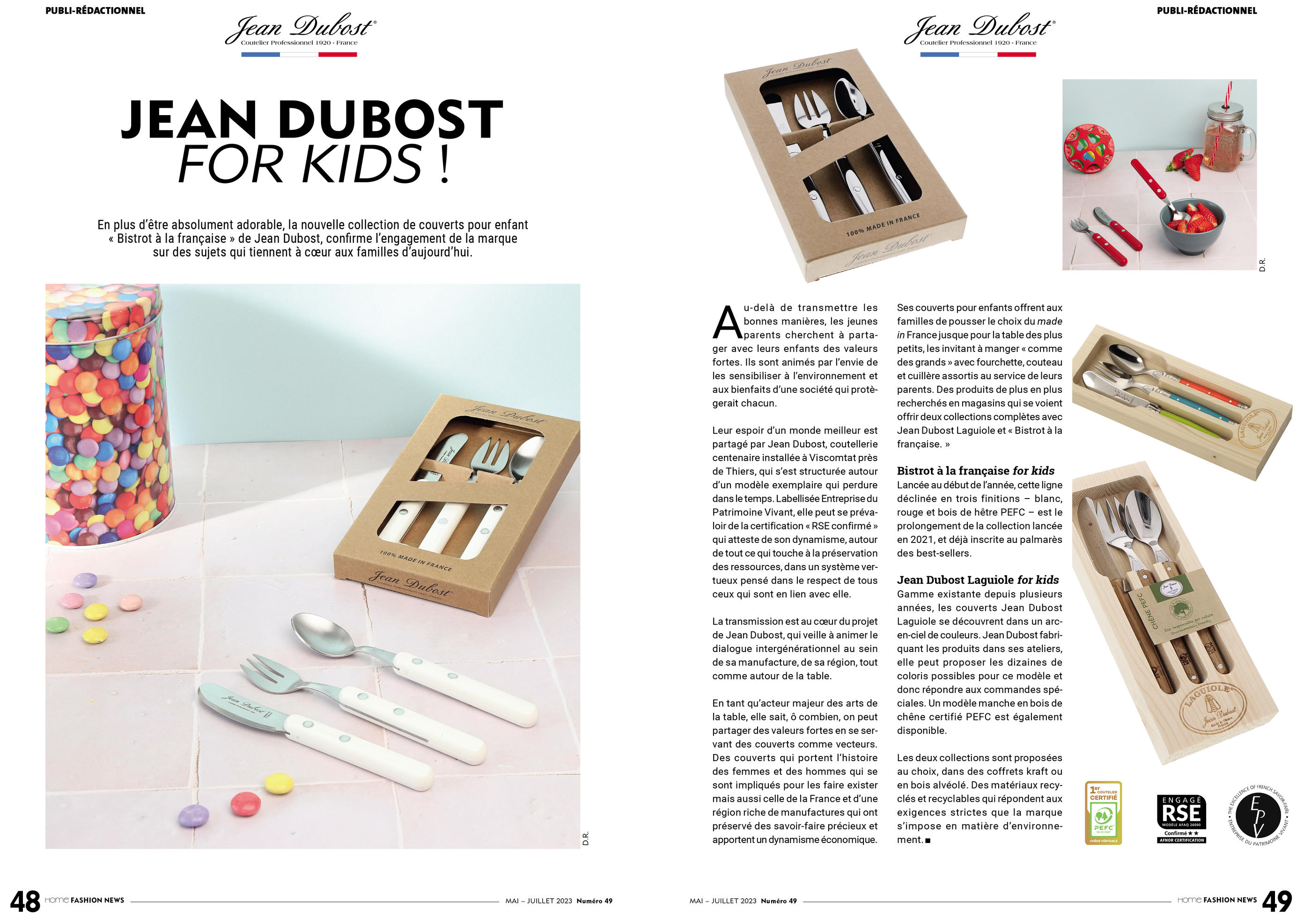 El tiempo de la comida es un gran momento para compartir: compartir sabores pero no eso! Elegir cubiertos infantiles Jean Dubost es también compartir los valores de la fabricación francesa, el medio ambiente, el empleo local y el circuito corto. " Nos comprometemos a ofrecer a las familias que impulsen la elección del Made in France hasta la mesa de los más pequeños, invitándoles a comer "como grandes" con cuchara, tenedor y cuchillo a juego al servicio de sus padres".
